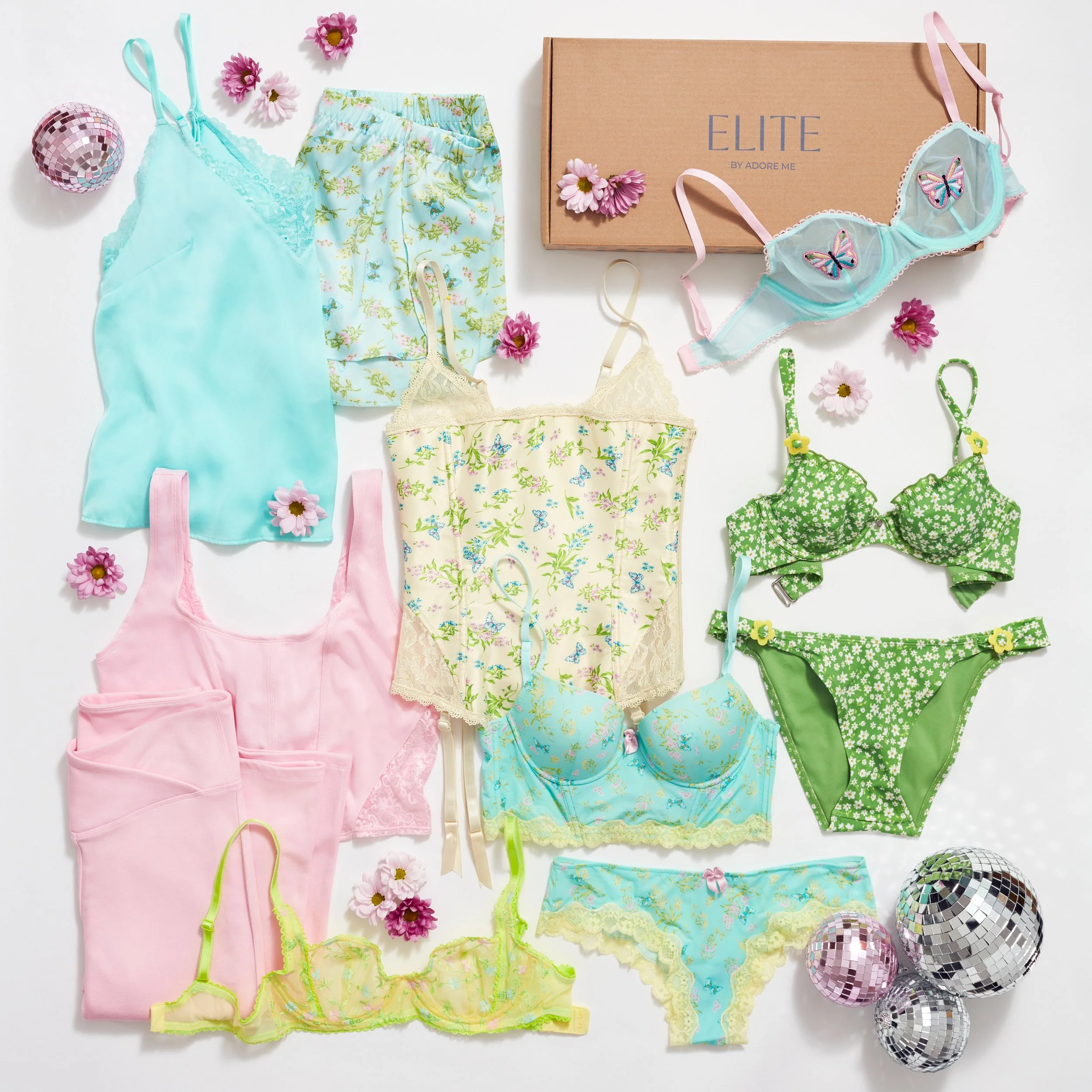 Art direction for Adore Me’s try-at-home subscription service, Elite. Airy, solid backgrounds perform the best for ads while still maintaining the our branding through our styling (layering, interesting angels, and fun props).